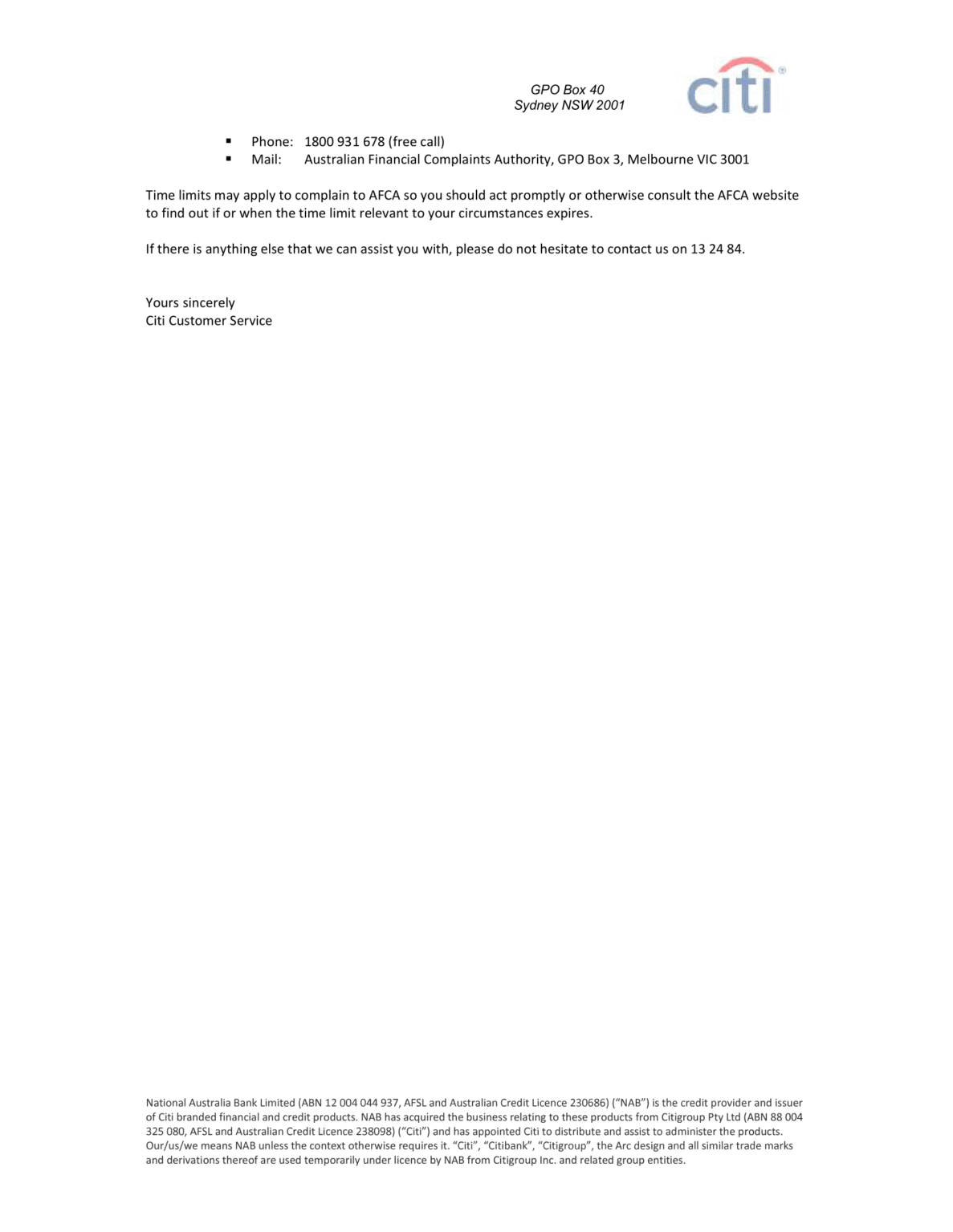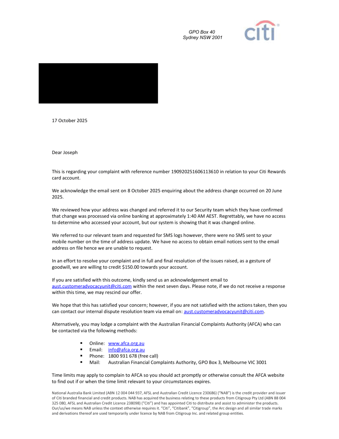CITI Complaint (NAB-ID-01) – Letter-002, dated 17 October 2025