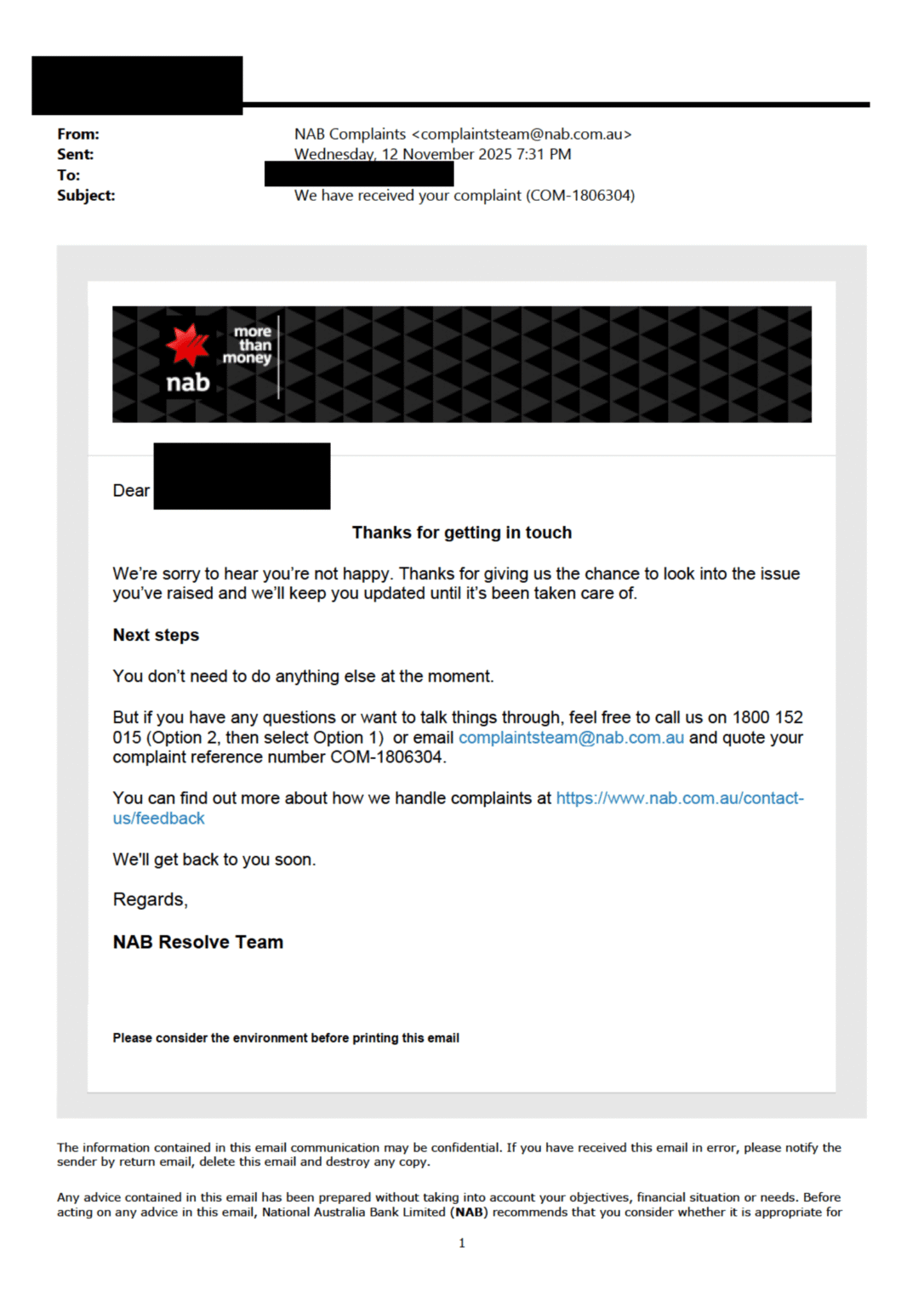 NAB Complaint (NAB-ID-02) – Email-001, dated 12 November 2025