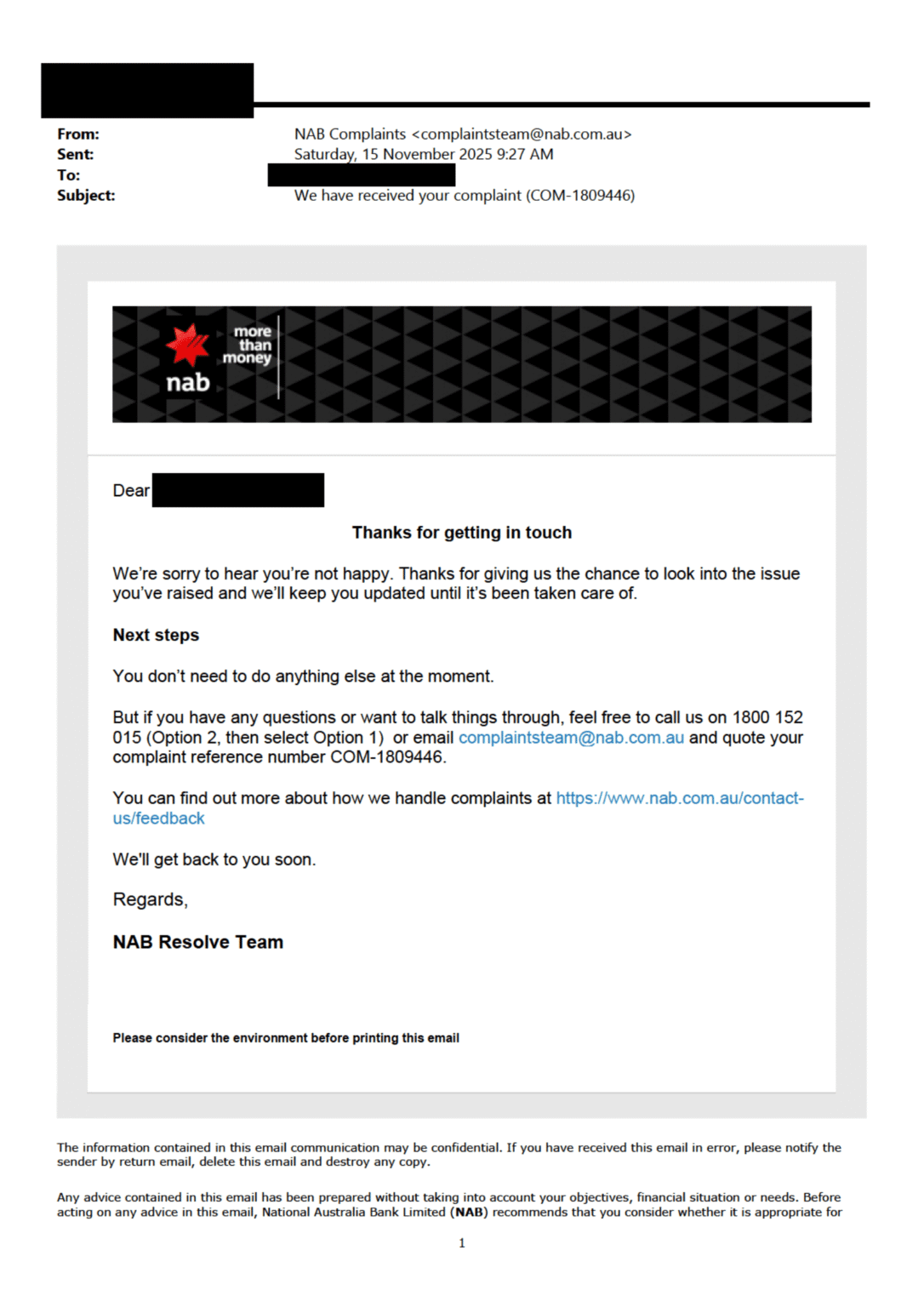 NAB Complaint (NAB-ID-03) – Email-001, dated 15 November 2025