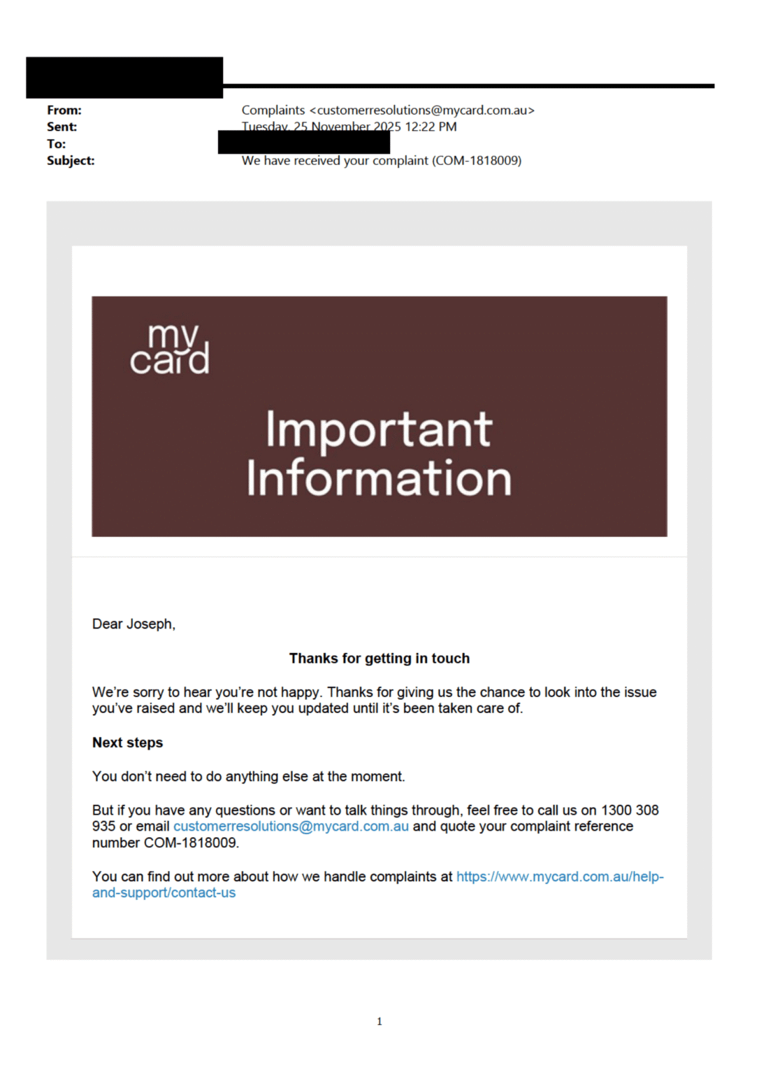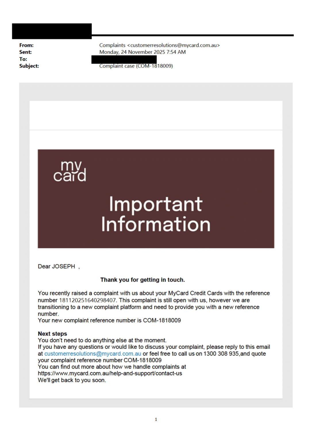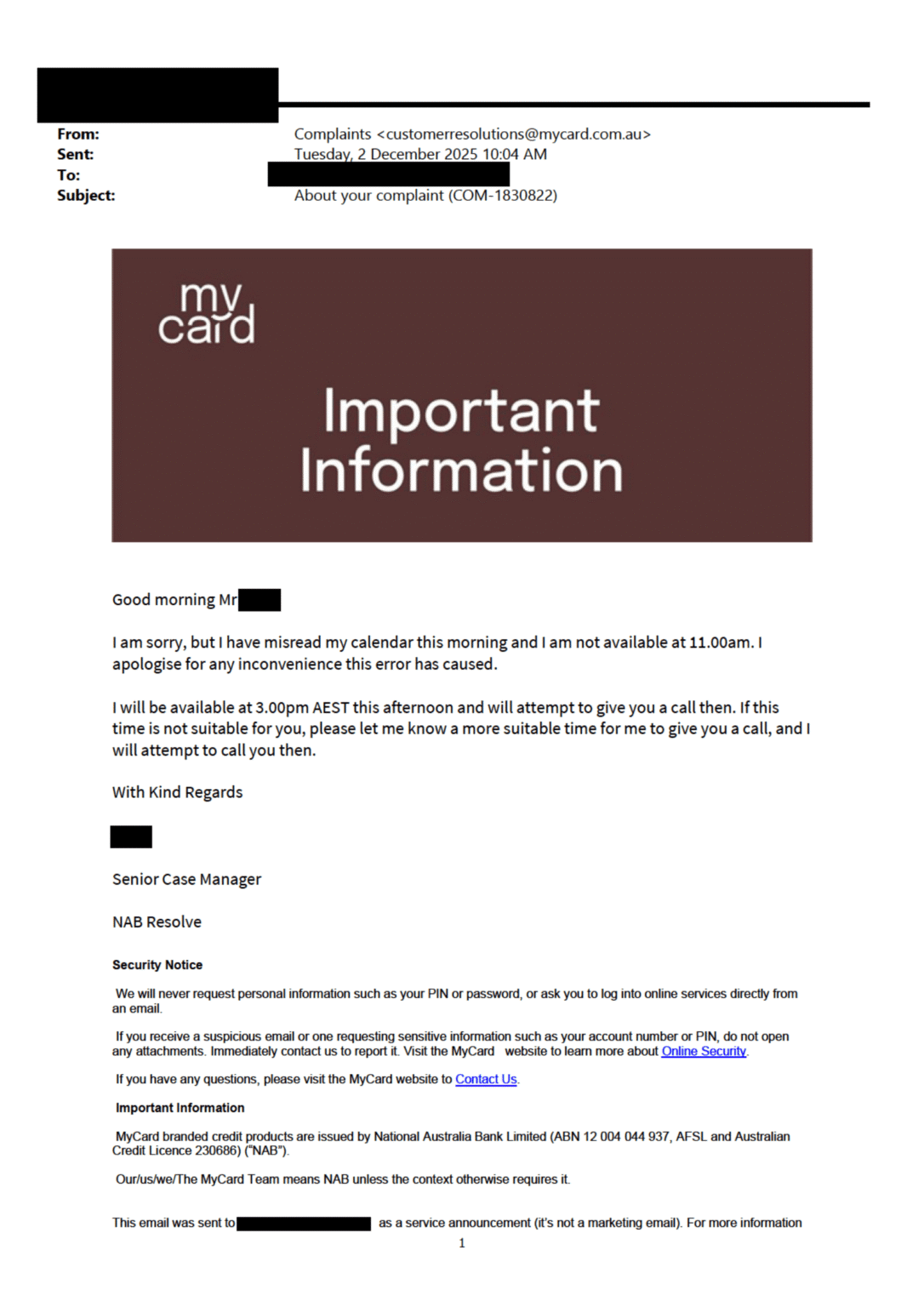 NAB Complaint (NAB-ID-06) – Email-003, dated 2 December 2025