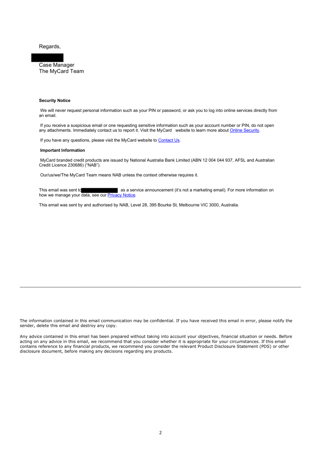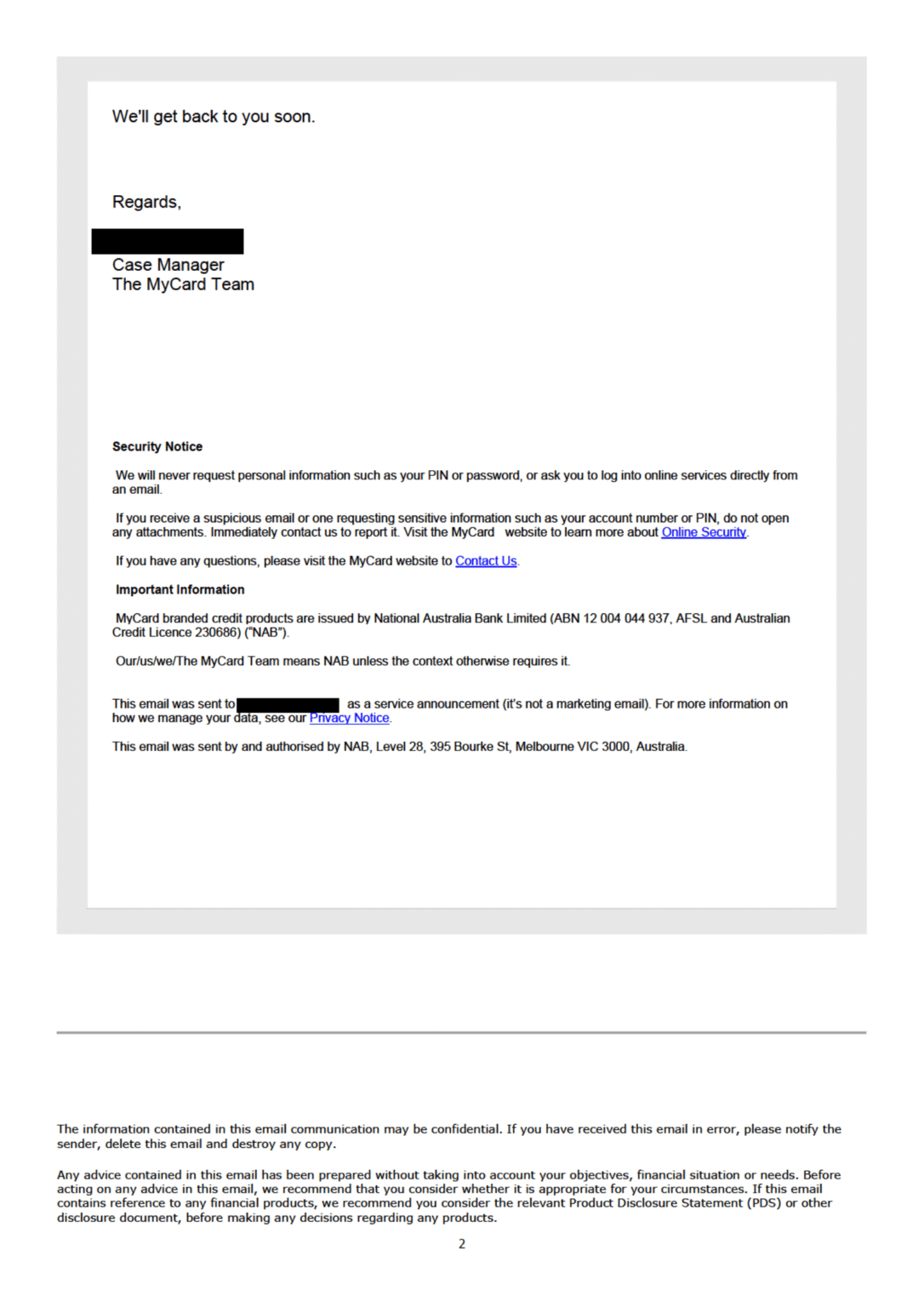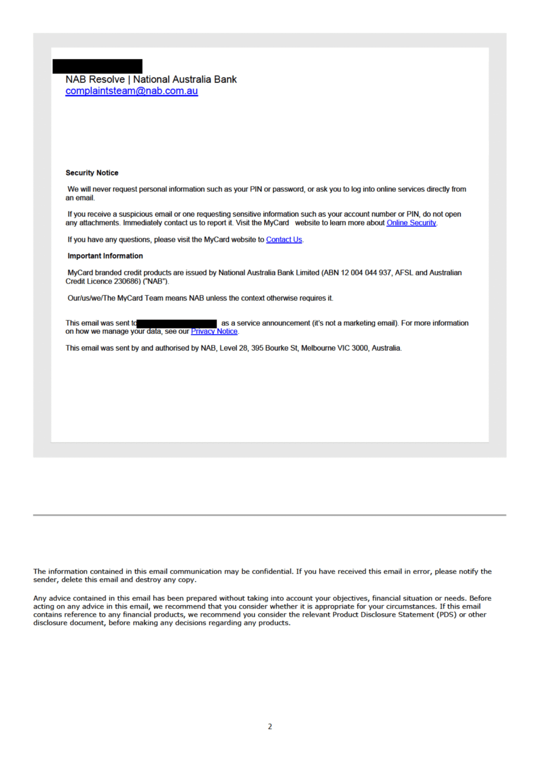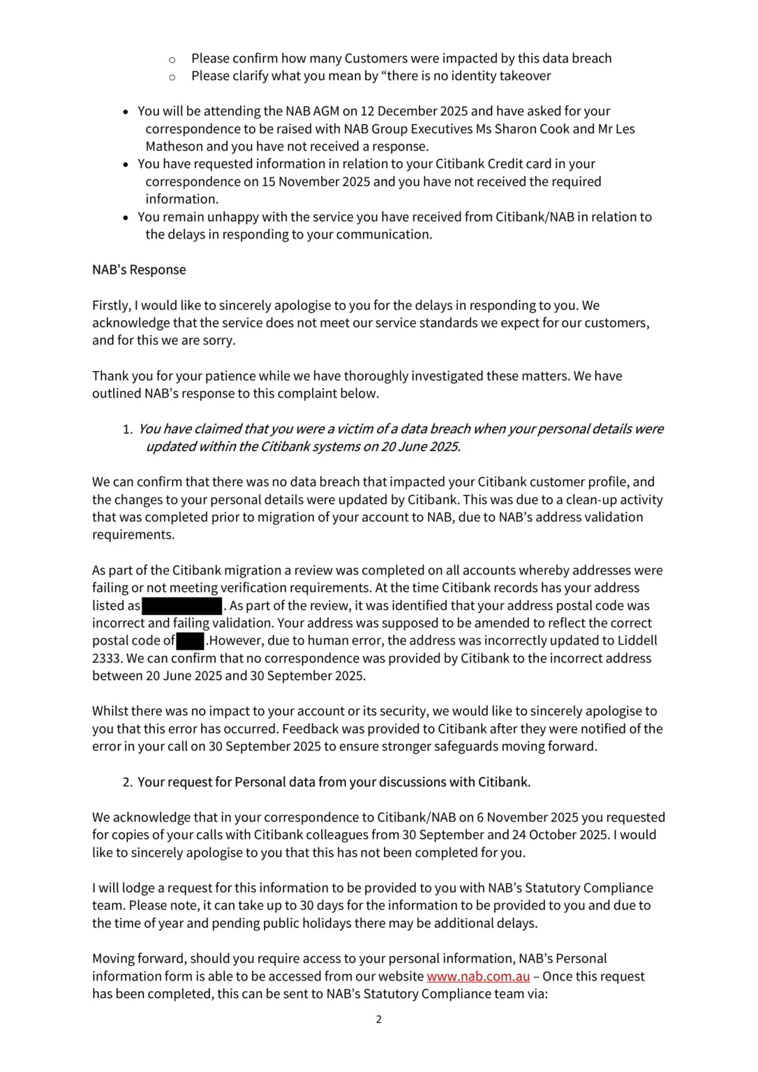 NAB Complaint (NAB-ID-06) – Email-002, dated 2 December 2025