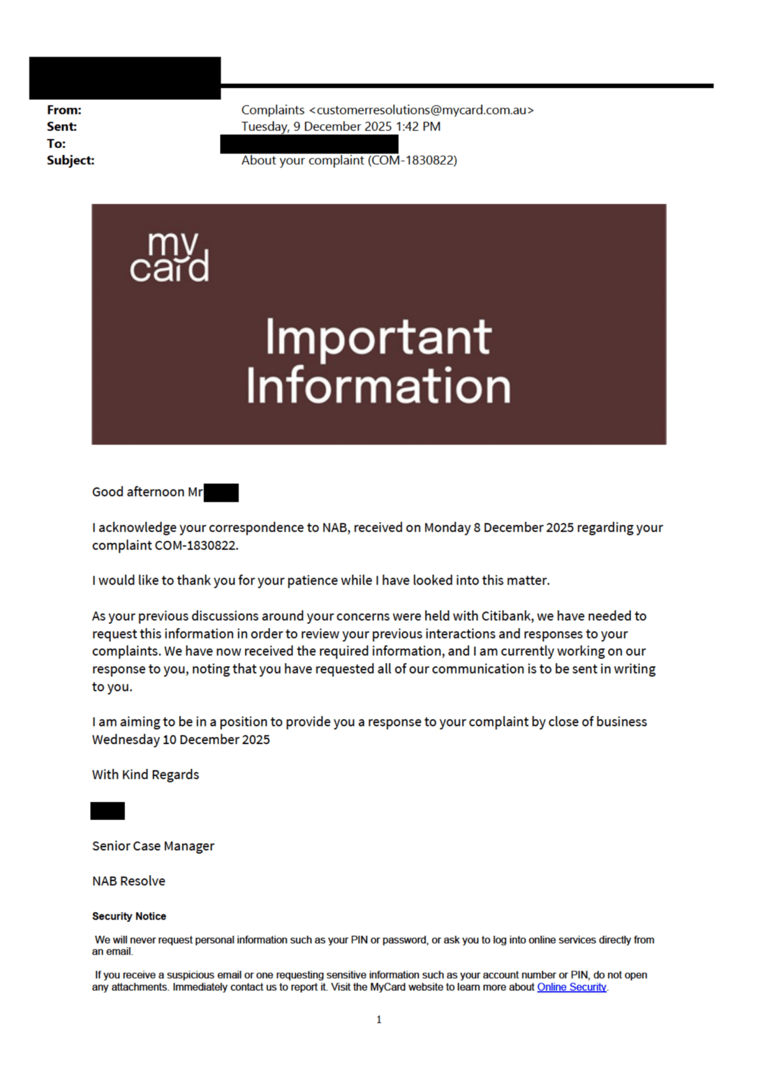 NAB Complaint (NAB-ID-06) – Email-004, dated 9 December 2025