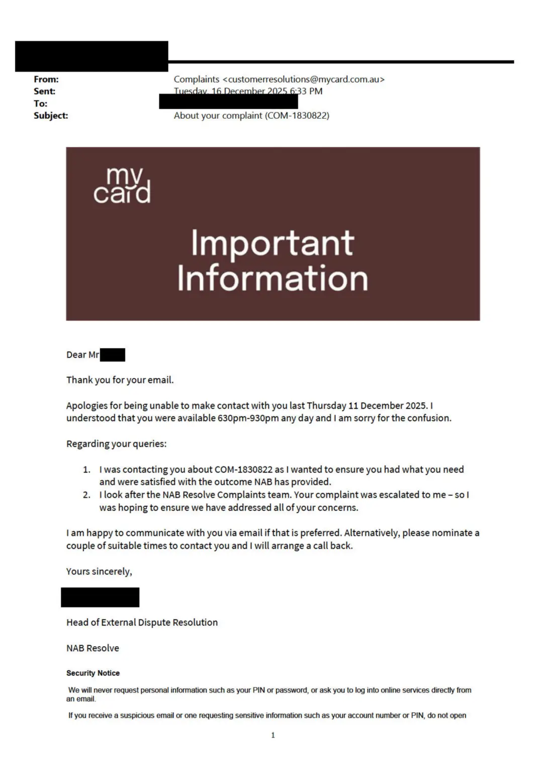 NAB Complaint (NAB-ID-06) – Email-006, dated 16 December 2025