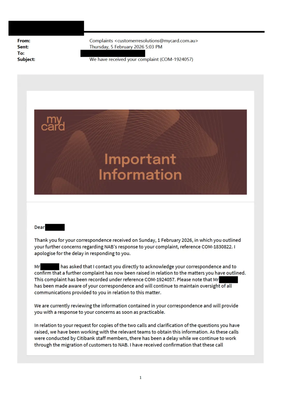 NAB Complaint (NAB-ID-07) – Email-001, dated 5 February 2026