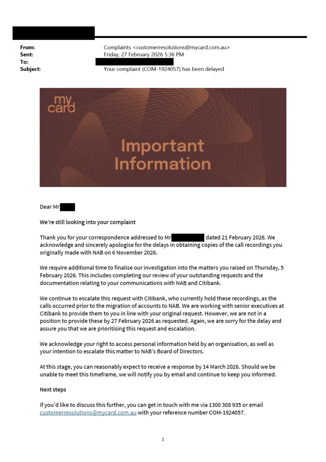 NAB Complaint (NAB-ID-07) – Email-002, dated 20 February 2026